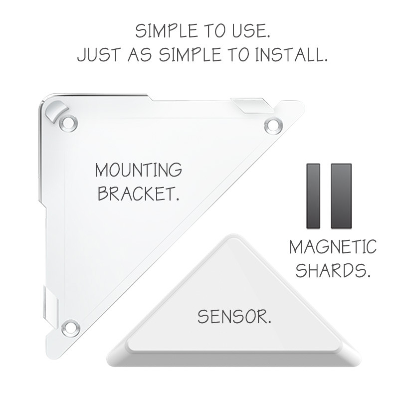 Door / Window Sensor 6 has been engineered with 3 parts; a sensor, an invisible mounting bracket, and a slim magnetic shard. Each part isn’t only responsible for making Door / Window Sensor 6 so powerful, but also for making it so easy to install.